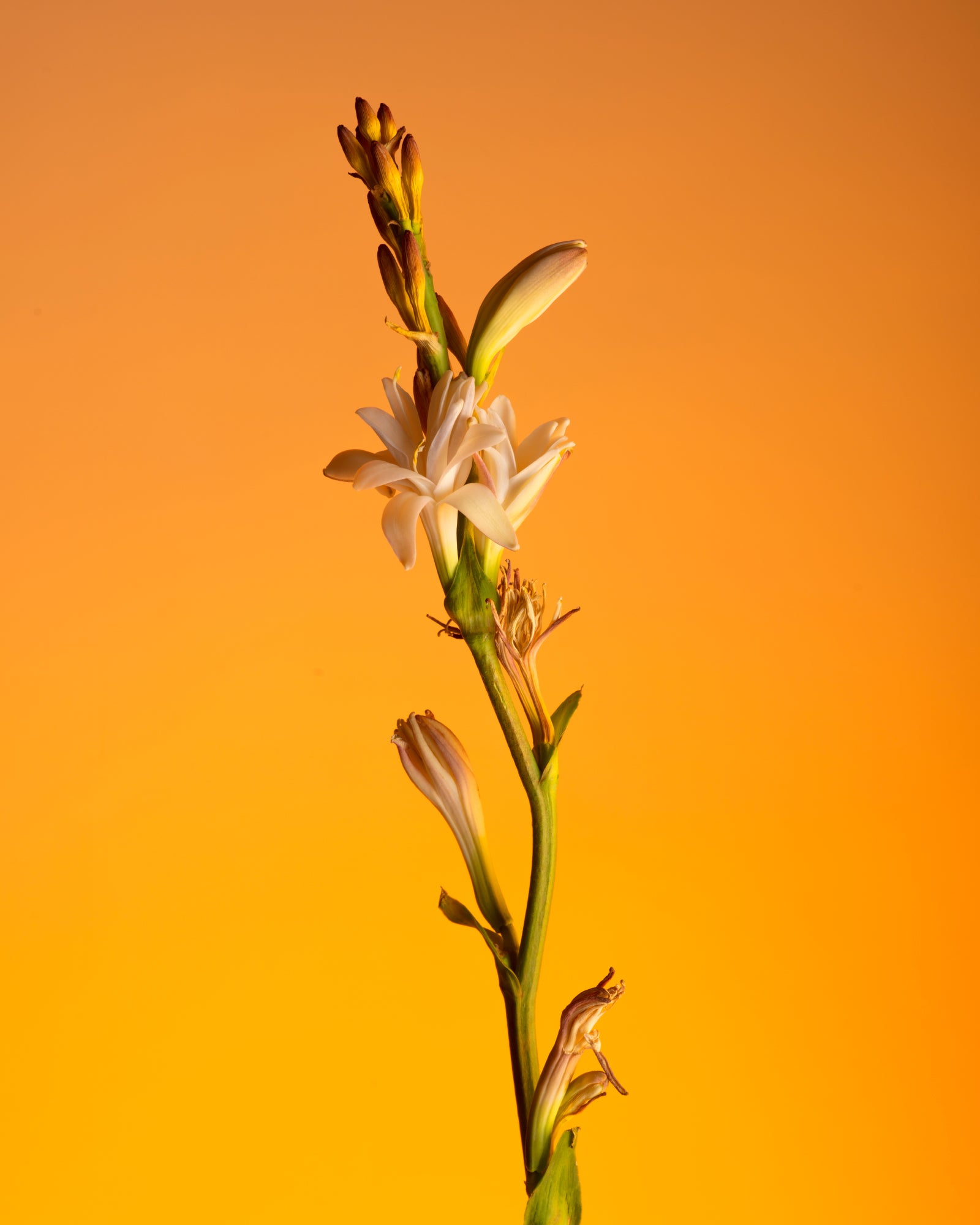 "I have a deep affection for tuberose due to its sensual, almost carnal aura. When paired with a bouquet of white solar flowers, tuberose becomes truly magnificent. The creamy notes of iris and sandalwood, alongside hints of benzoin, amplify the floral heart." Cécile Matton