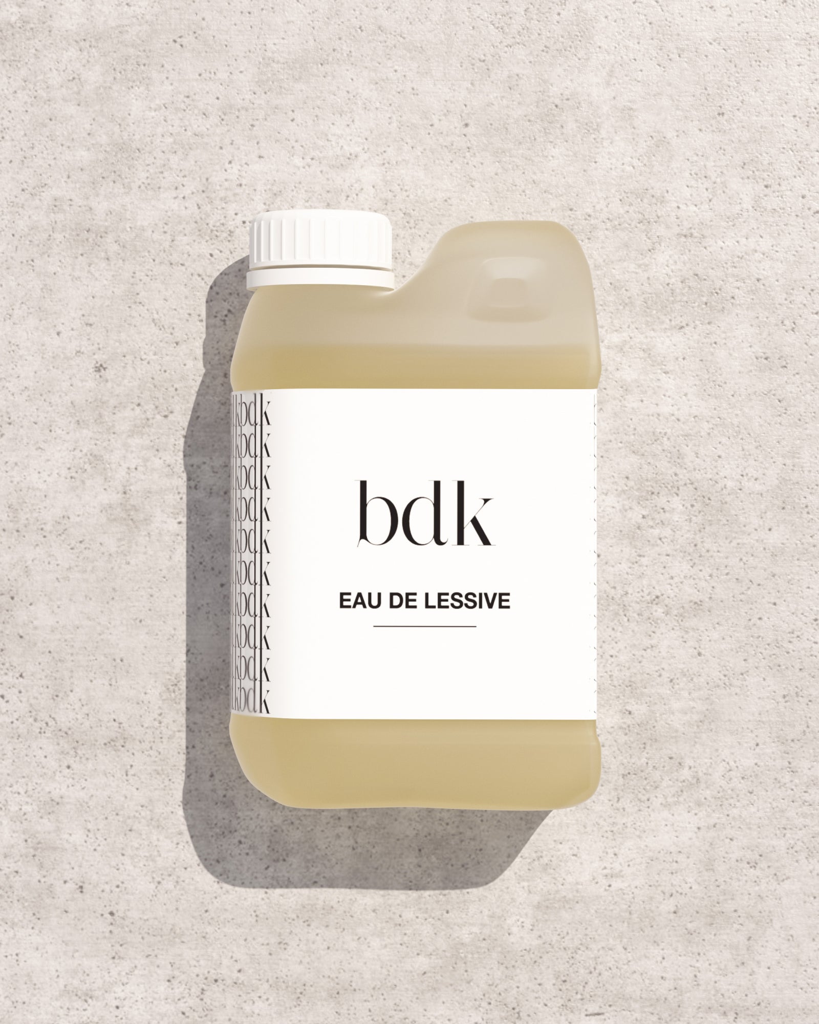 La fragrance de l’eau de lessive BDK Parfums a été élaborée de manière sophistiquée, comme un parfum. Le choix des ingrédients sont ceux du schéma historique de la Cologne : bergamote, citron et bigarade accompagnés d’un bouquet d’aromates (thym, romarin, lavande et menthe poivrée), qui précèdent un cœur floral fleur d’oranger. Le fond boisé léger contient quelques bois blancs fusants pour la tenue. Son originalité provient du fait que je l’ai saupoudré d’épices fraîches, de baies roses, de gingembre et de cardamome, très atypique pour une lessive. Anne-Sophie Behaghel