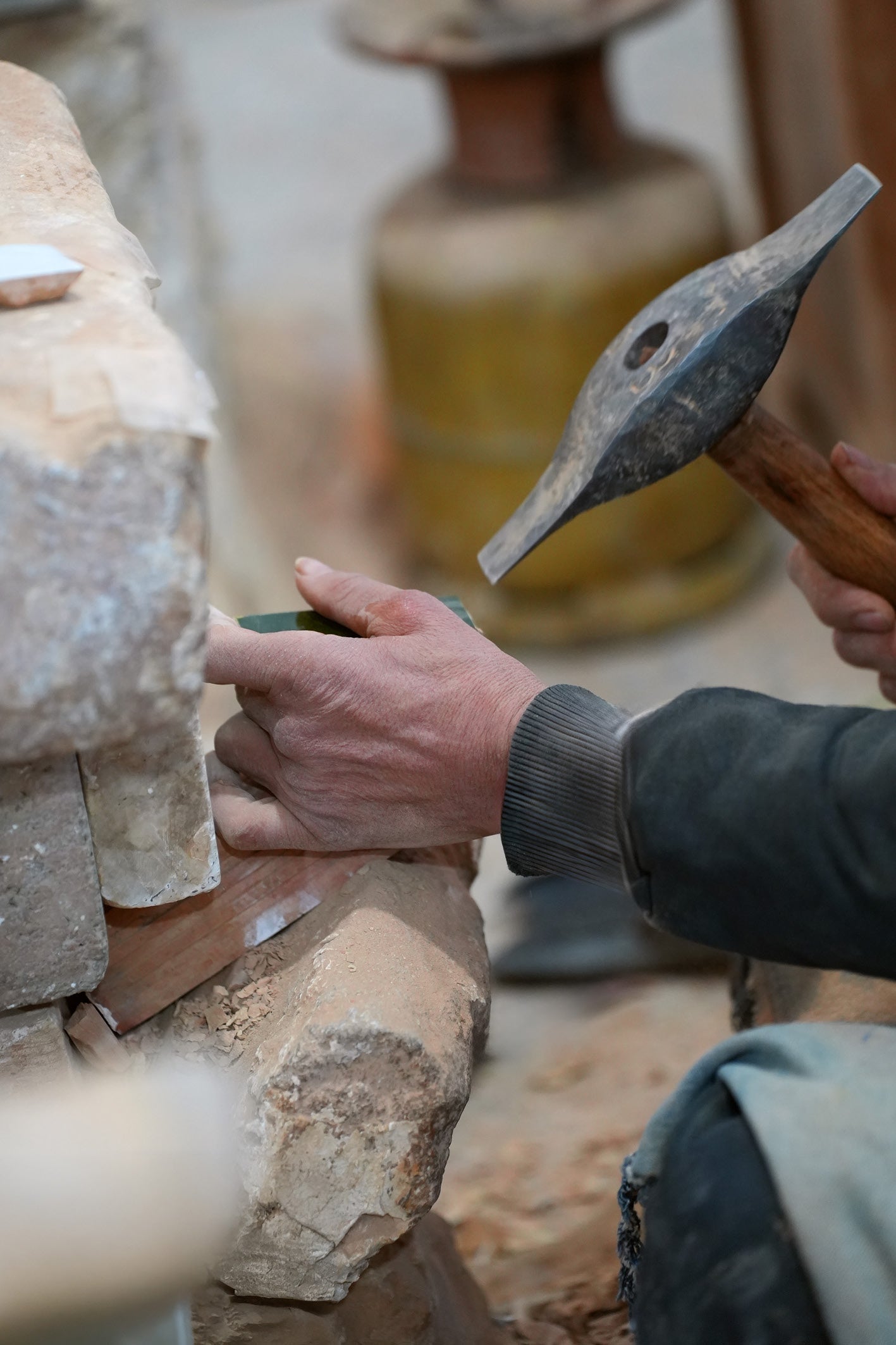 Ce dialogue entre pierre, zellige et laiton fait écho à celui qui existe entre le travail du parfumeur et le mien. Là où le créateur de parfum façonne une matière invisible — l’odeur — je façonne une matière tangible — la terre. Dans les deux cas, il s’agit de transformer une matière brute par le geste et la sensibilité afin de faire naître une émotion.